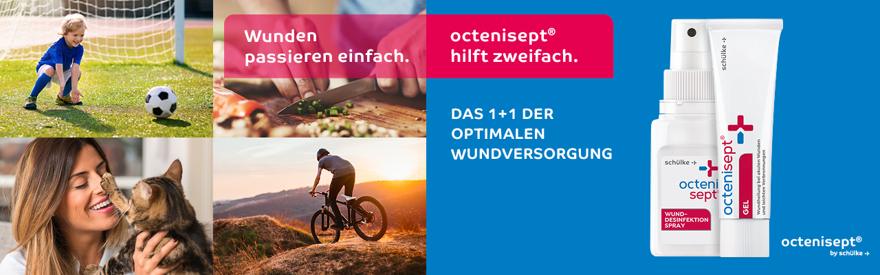 octenisept® Gel unterstützt den Heilungsprozess von akuten Hautwunden, die rasch beim Sport, im Alltag oder in der Freizeit entstehen können. Nach der Reinigung und Desinfektion von leichten Schnitt- und Schürfwunden schafft octenisept® Gel ein feuchtes Milieu und hält die Wunde durch eine schützende Schicht keimfrei. Das Gel kühlt betroffene Stellen und brennt nicht. Angewendet werden kann es sowohl bei Erwachsenen als auch bei Kindern.